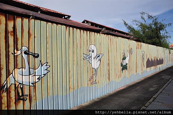 出了遊客中心,往停車場走去,一樣一整路可以看到美麗的彩繪,